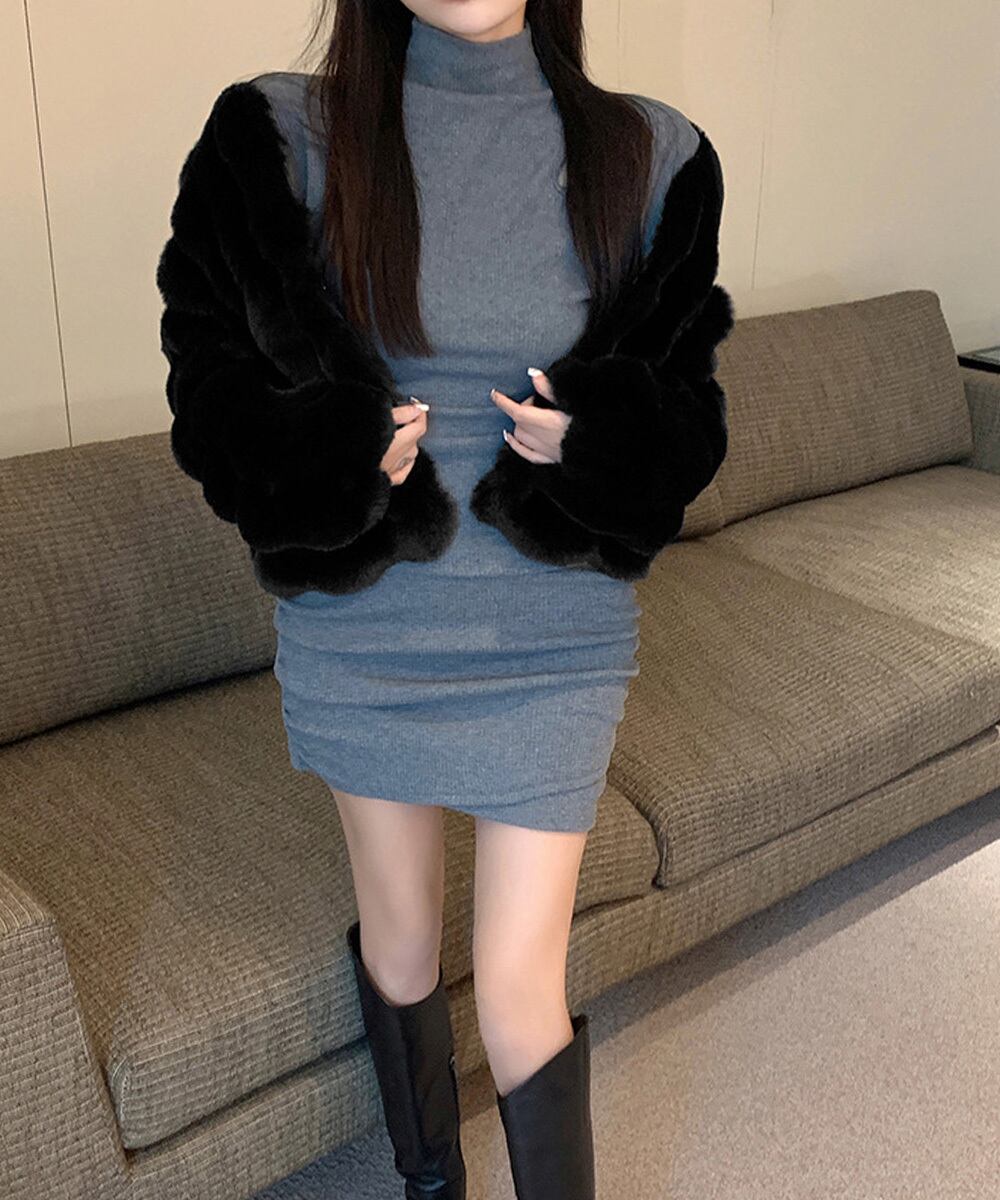 ふわふわとしたボリューム感のあるフェイクファーショートコートです。