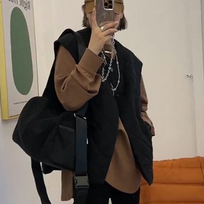 ・着回し抜群のふんわりと軽い中綿ベスト。