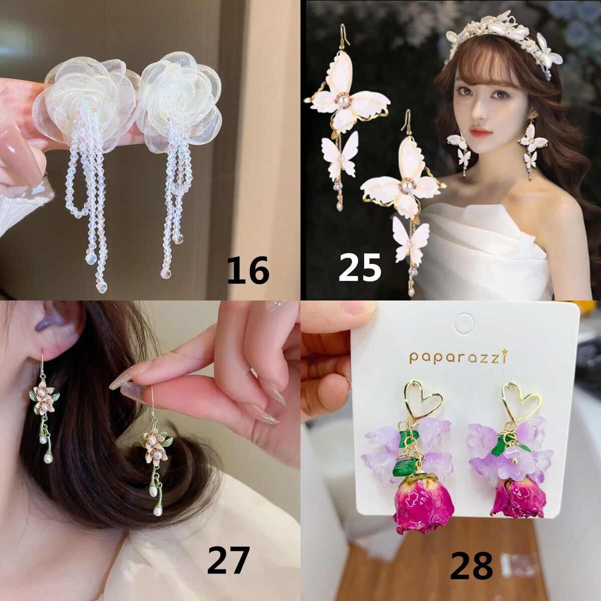 可愛い フラワーピアス お花 大人っぽい シェル 造花ピアス 揺れる イヤリング フックピアス ボヘミアン
