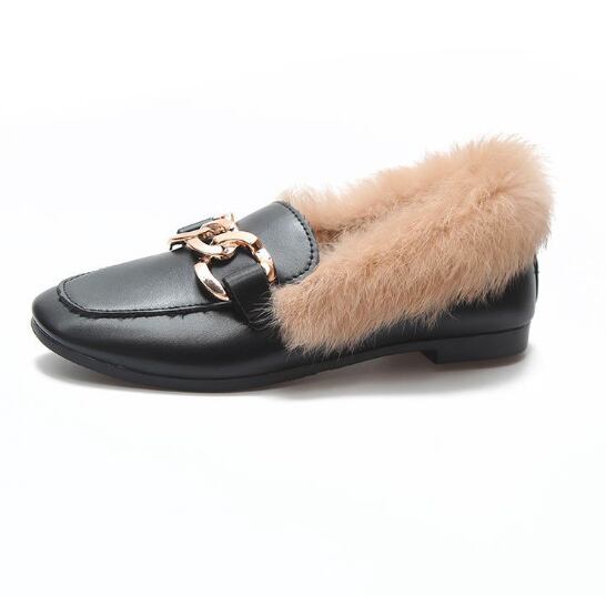 レディース ベーシック ファー パンプス 楽ちん フラット ヒール デイリー パンプス PU