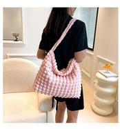 ショルダートートバッグ ポップコーン ワッフル サブバッグ 軽量 ファスナー 可愛い ピンク