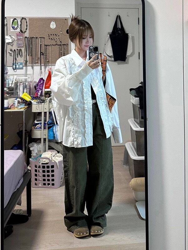 トップス シャツ ブラウス カジュアルシャツ フリル 長袖 レディースシャツ
