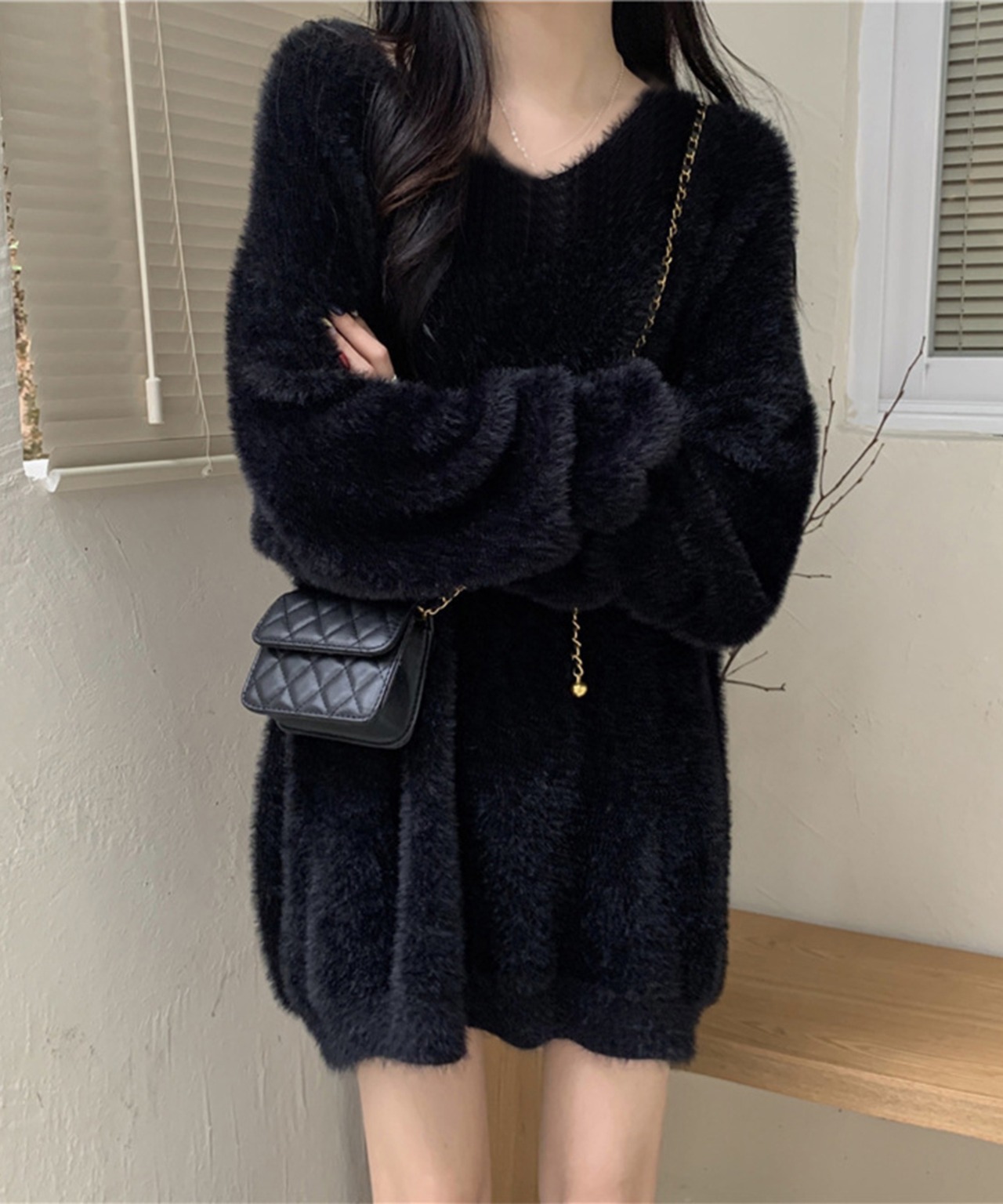 肌触りの良いシャギーのニット素材がシーズンムードを高めてくれる1枚