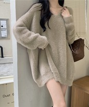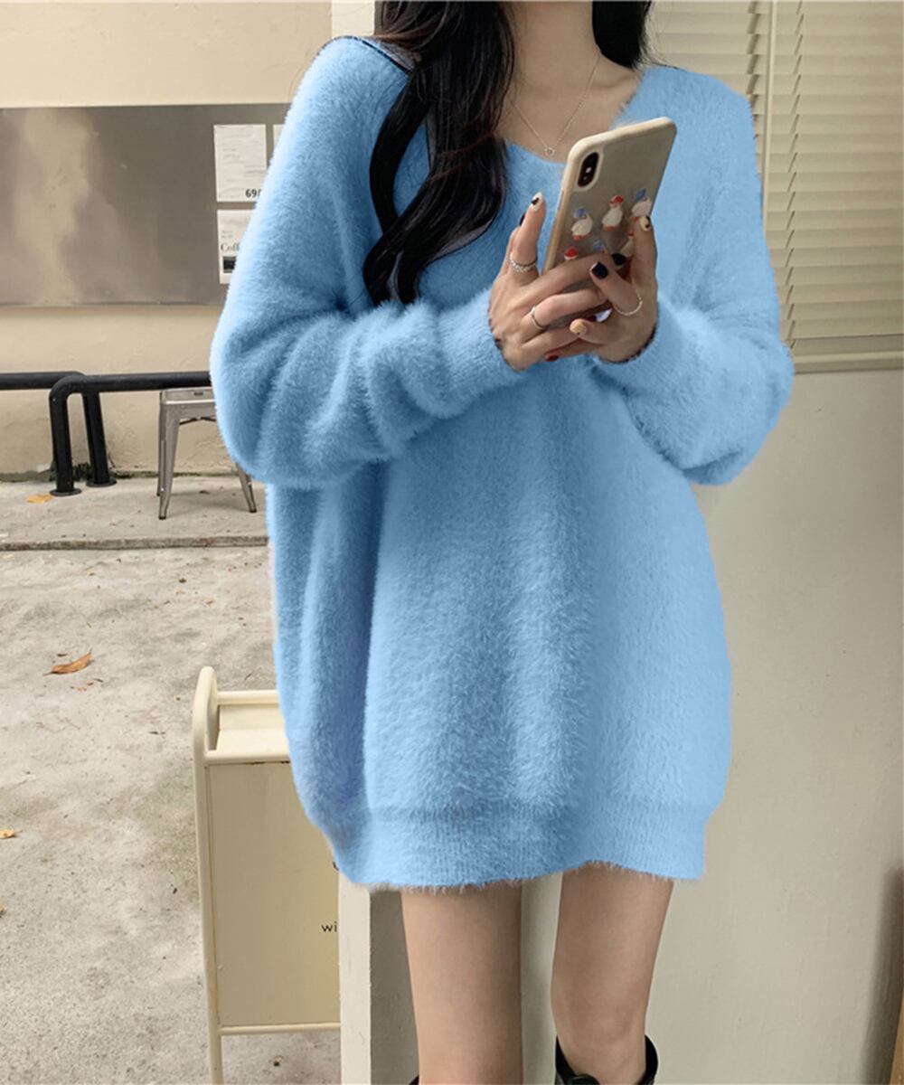 セーター 無地 Vネック ゆったり シャギー 着回し 大人 シンプル カジュアル セクシー きれいめ