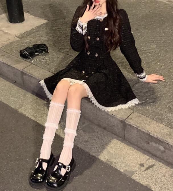 レディース ハイウエスト 長袖 ミニ ワンピース ドレス 台型スカート