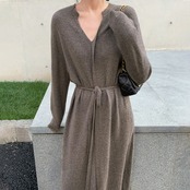 キーネック ニットワンピース レディース セーターワンピース 暖かい