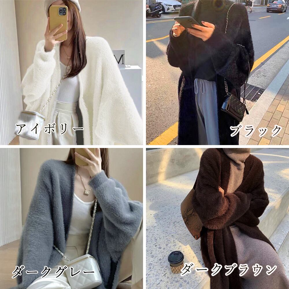 ふわふわシャギーニットとボリューム感のある袖が大人可愛い印象を与えてくれるロングカーディガン