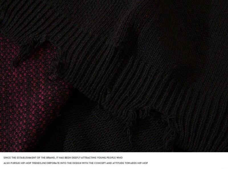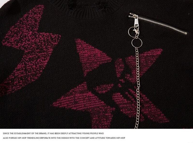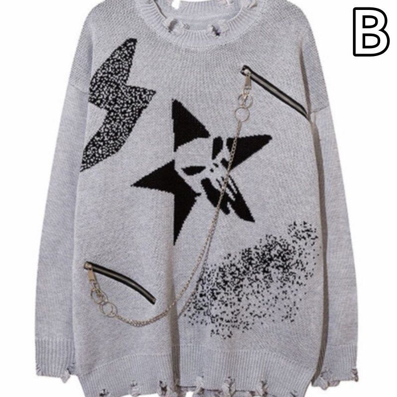 トップス ニット セーター 毛糸 長袖 ダメージ加工 チェーン レディース