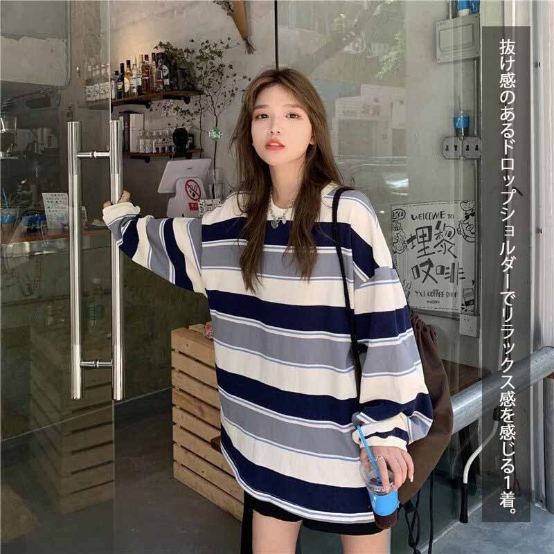 レディース プルオーバー 長袖シャツ トップストレーナー スウェット ボーダー 縞々 ロング