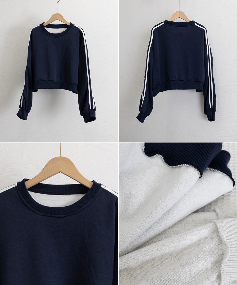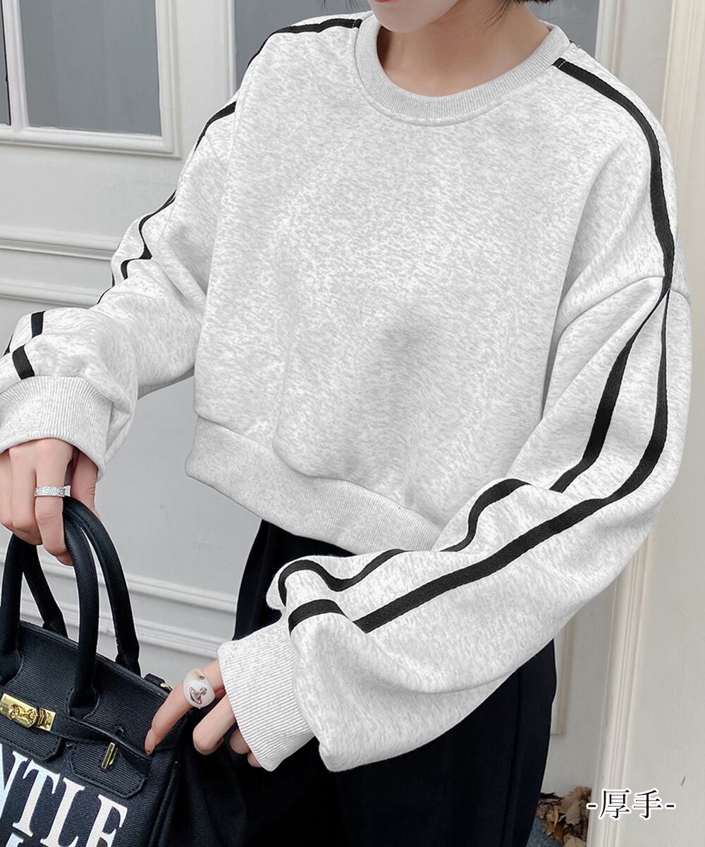 サイドラインがアクセントになった、シンプルでスタイリッシュなショート丈スウェットです。