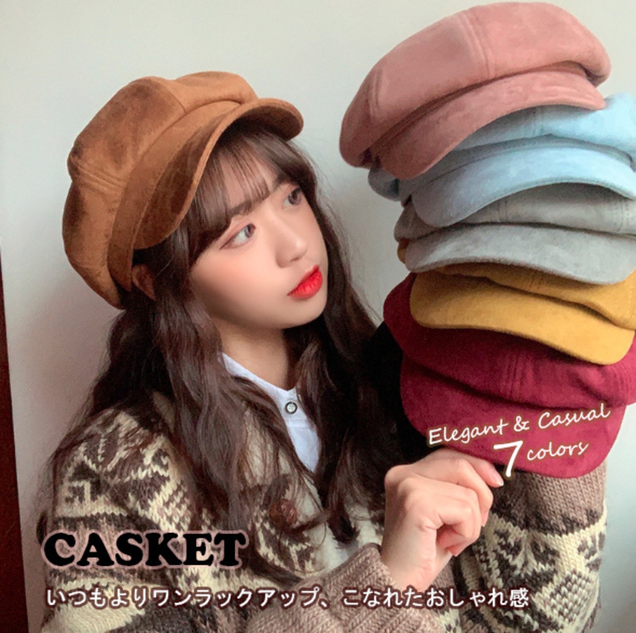 レディース 帽子 キャップ 無地 キャスケット コーデ 防寒 保温 スエード