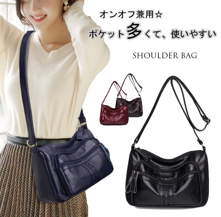 オンオフ兼用☆ポケット多くて使いやすい ショルダーバッグ