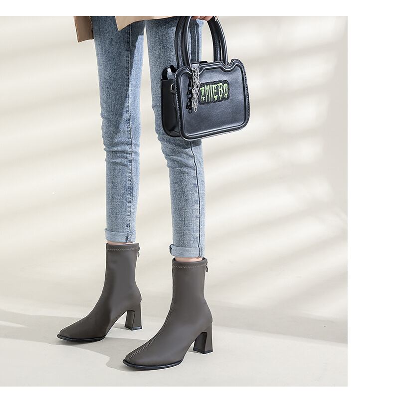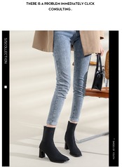 人気 レディース 靴 ミドルブーツ ショートブーツ チャンキーヒール 太ヒール 美脚 脚長 黒