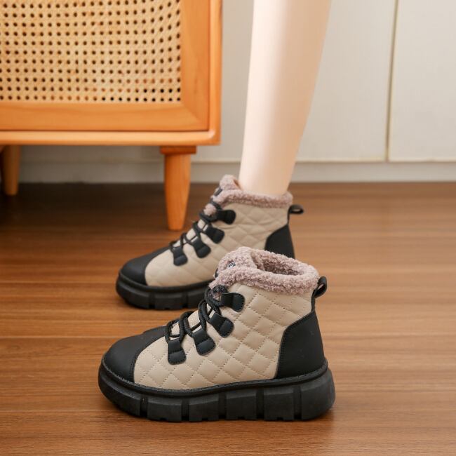 レディース 靴 キルト ショートブーツ 裏起毛 裏ボア スニーカー風 スノーブーツ