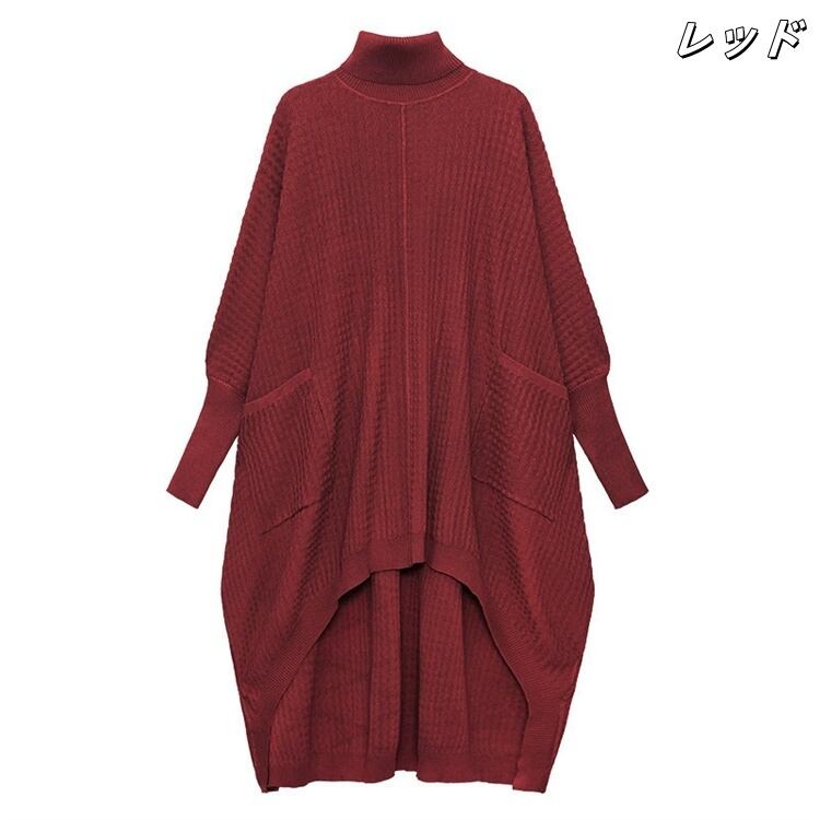 イレギュラー セーターワンピース ロングスカート アメリカン タートルネック
