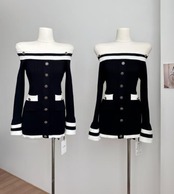 レディース ボートネック 長袖 ニット 毛糸 ミニ ワンピース ドレス タイトスカート