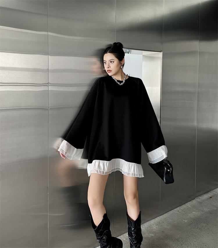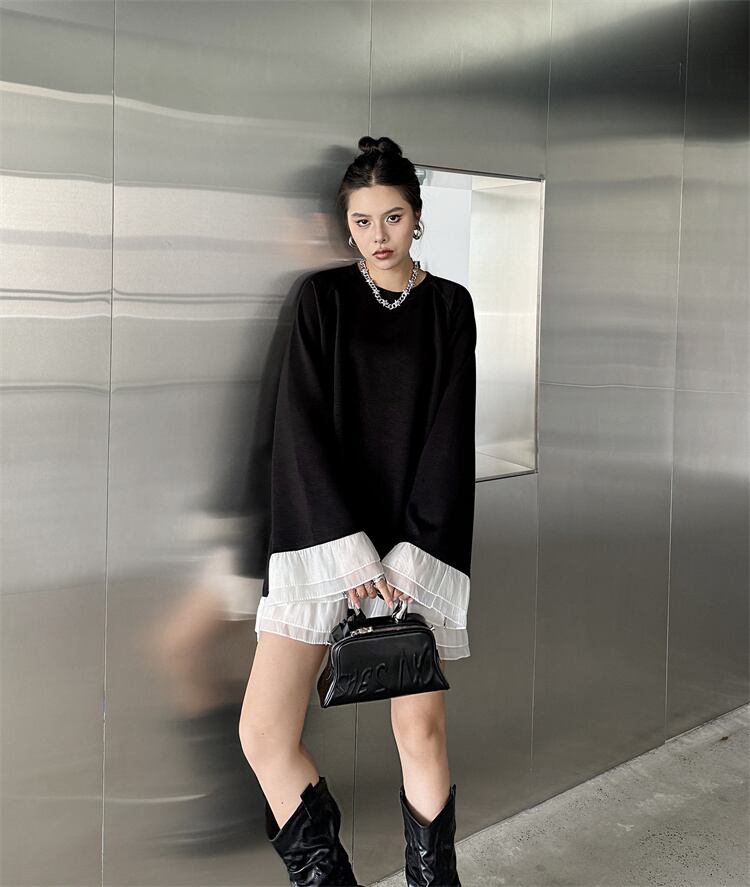 ミディアムスカート 新作 色突き デザインセンス 長袖 ワンピース 2024秋