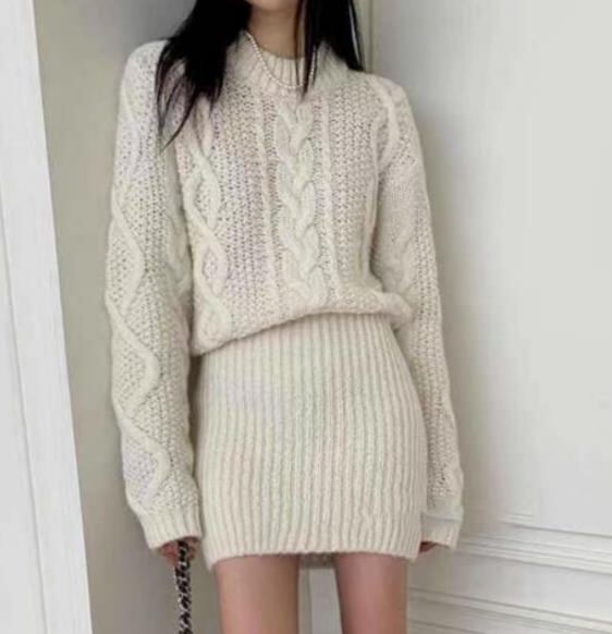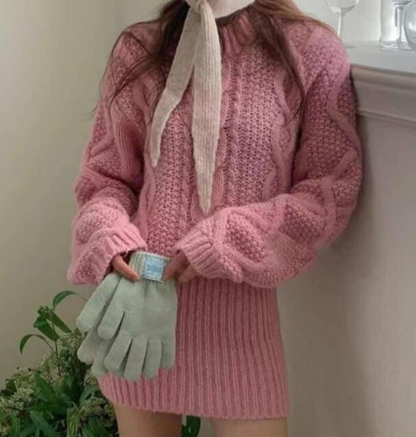 レディース ハイウエスト 長袖 ニット ミニ ワンピース ドレス タイトスカート
