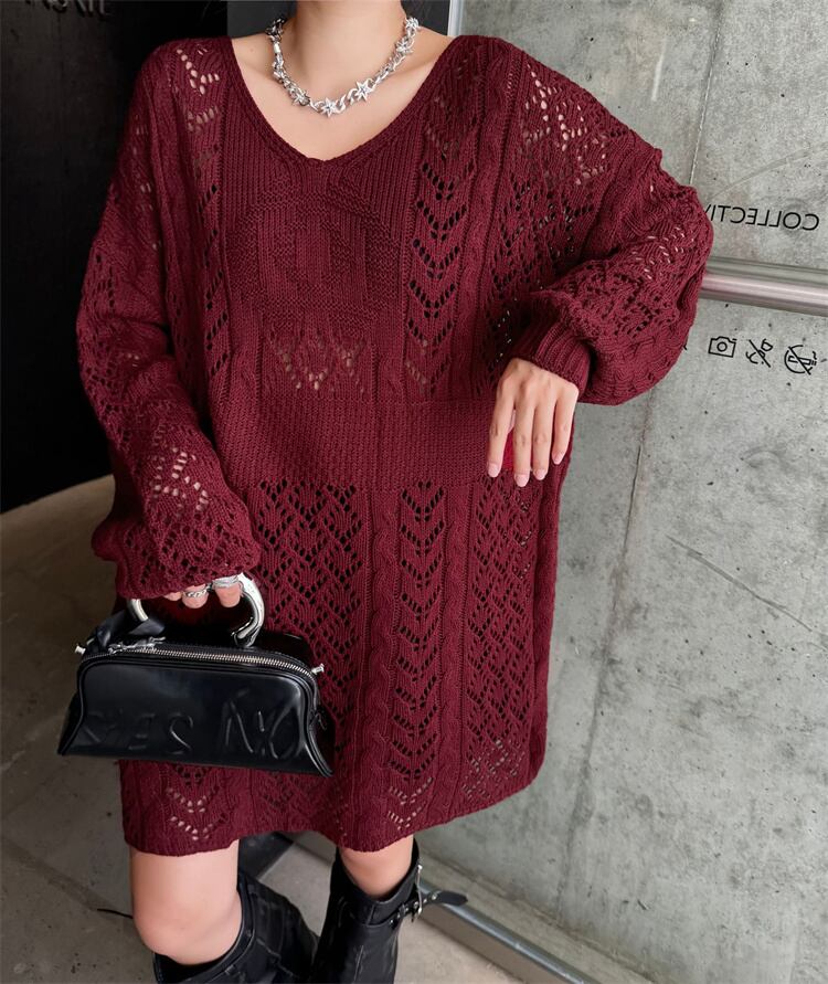 クールな中に甘さを添えて あったかグッズ Vネック ニットワンピース ミディアムスカート セーター