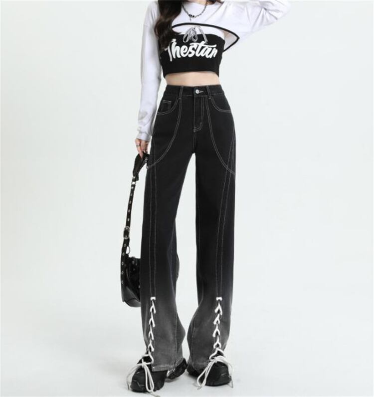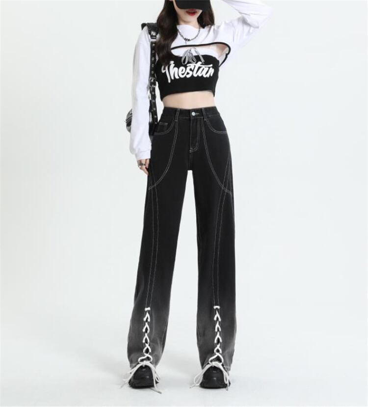 スラックス バンディング ロングパンツ ハイウエスト デニムパンツ ジーンズ ワイドパンツ