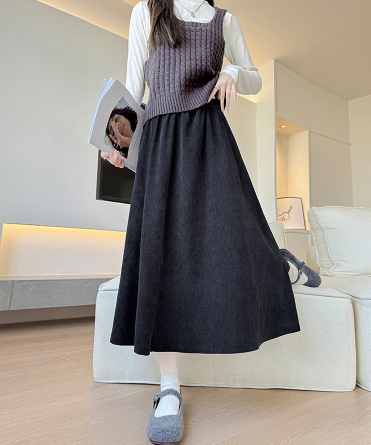 レディース 秋冬 ハイウエスト 膝下丈 リラックススカート 無地 きれいめ 大人可愛い オフィスカジュアル 通勤通学