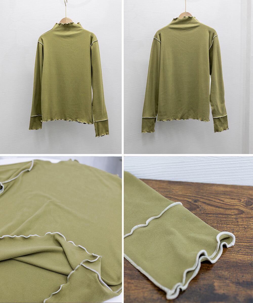 柔らかい あったか 防寒インナー 無地 バイカラートップス