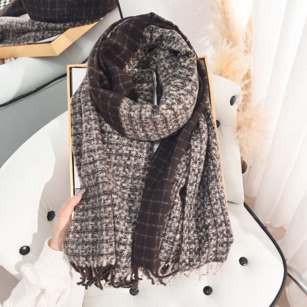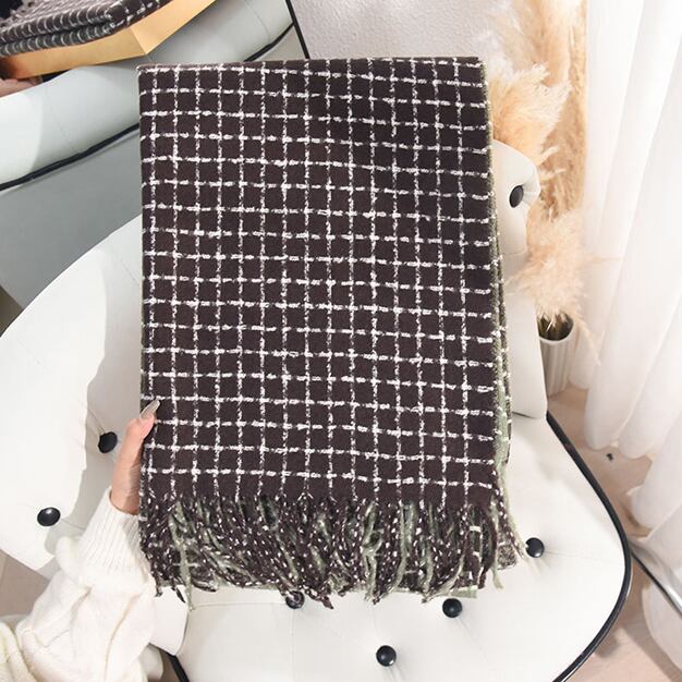 ・柔らかな肌触りのチェック柄大判ストール。