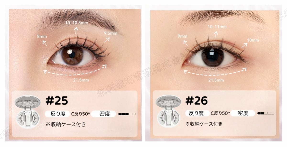 ナチュラルデザイン: 自然なカールとボリュームで、目元に華やかさをプラスします。普段使いから特別な日まで幅広く活躍します。