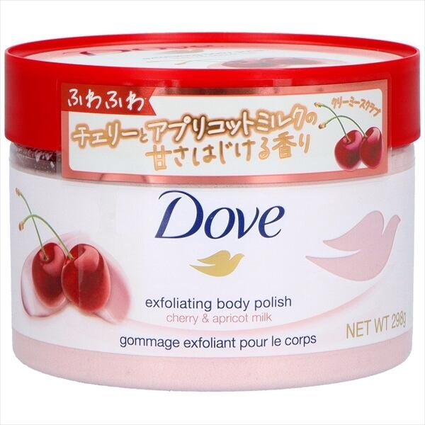 なめらかダヴクリーミースクラブで、うるおって透明感あふれるツヤ肌へ。クリーミーなテクスチャーだから肌の上でなめらかに伸びます。スクラブ成分配合で、古い角質をやさしく取り除きます。また製品中四分の一高保湿ミルク配合なので、うるおい成分が肌の深層まで浸透します。チェリー&アプリコットミルクの甘さはじける香り(香料配合)。