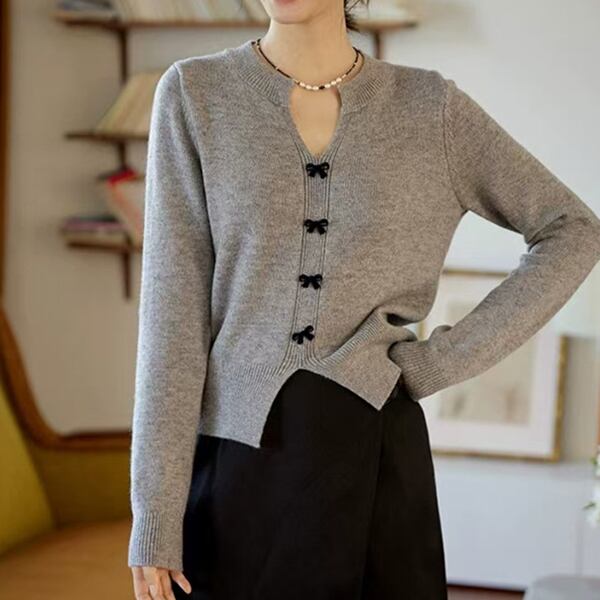 フロントスリットで抜け感のあるデザイン リボンスリットニット