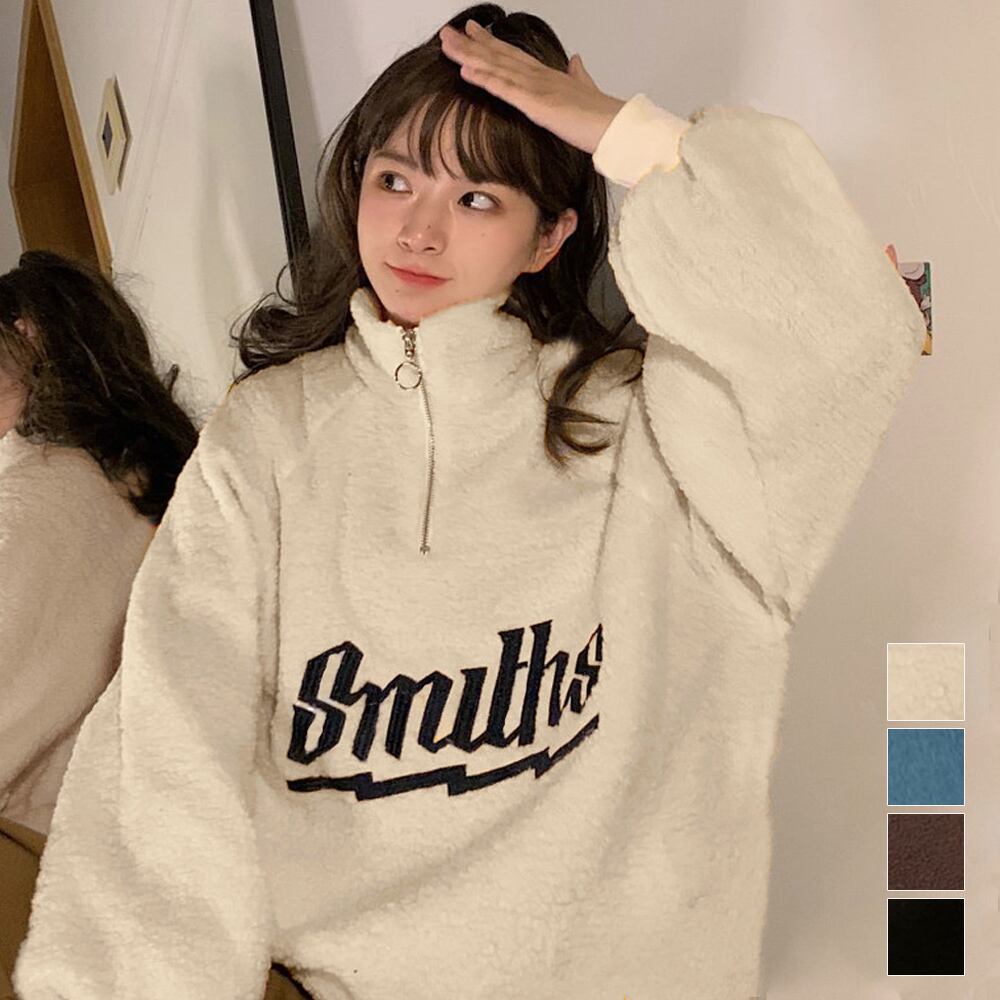レディース ハイネック ボアトップス プルオーバー 英字ロゴ ルームウエア カジュアル 秋冬暖かい お洒落 体型カバー服