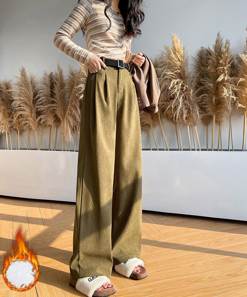 レディース 韓国風暖かいパンツ 美脚脚長 ハイウエストワイドパンツ 秋冬ロングパンツ 着やせストレートパンツ カジュアル