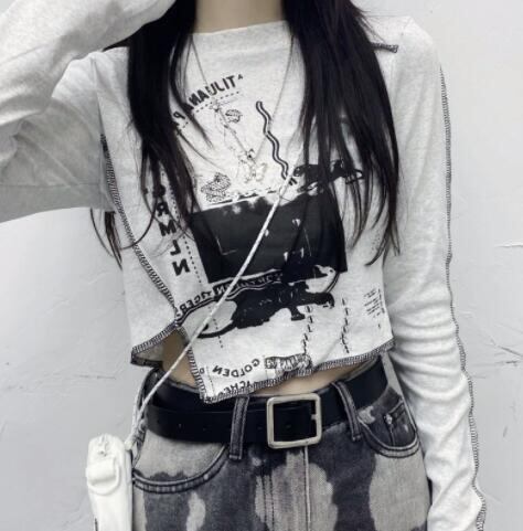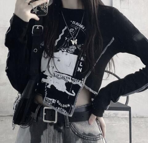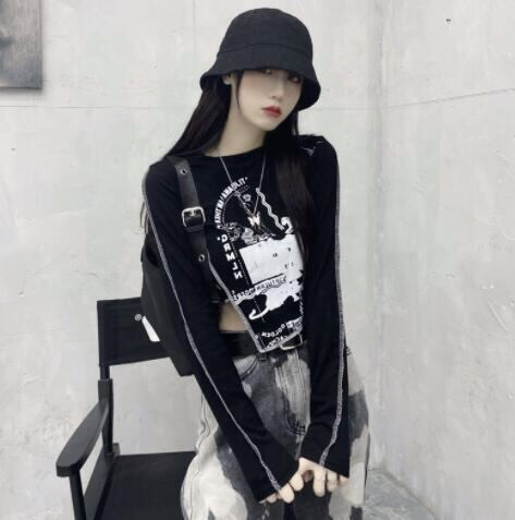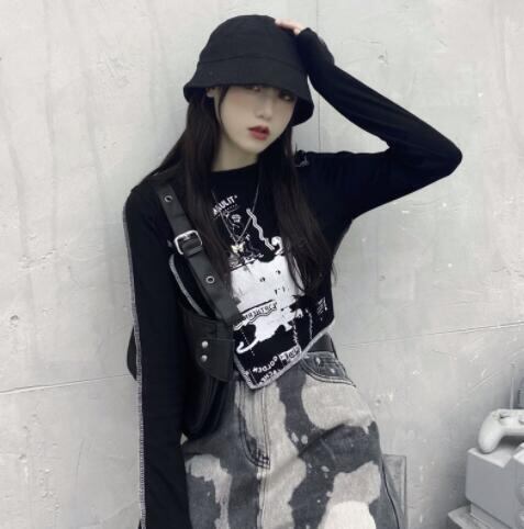 トップス レディース Tシャツ ブラウス ロングTシャツ ショート 暗黒系