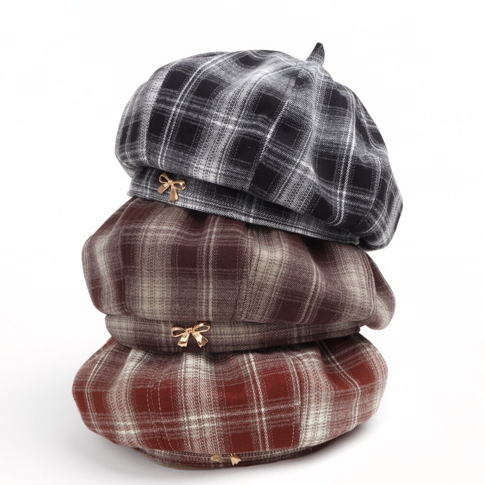 レディース・防寒・キャップ ・チェック柄・ファッションベレー帽子3色