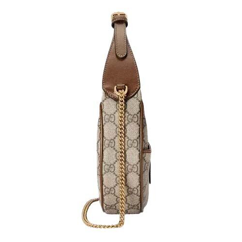GGスプリーム キャンバスで仕立てたハーフムーン型のシルエットが、レトロな雰囲気を醸し出すミニバッグ。それぞれのコレクションでは、異なる時代を旅するかのようにヴィンテージ エレメントにアーカイブコードやコンテンポラリーなディテールを組み合わせて、時空を超えた新しいデザインを生み出しています。歴史に対するグッチの情熱を映し出す、小ぶりなアクセサリーです。