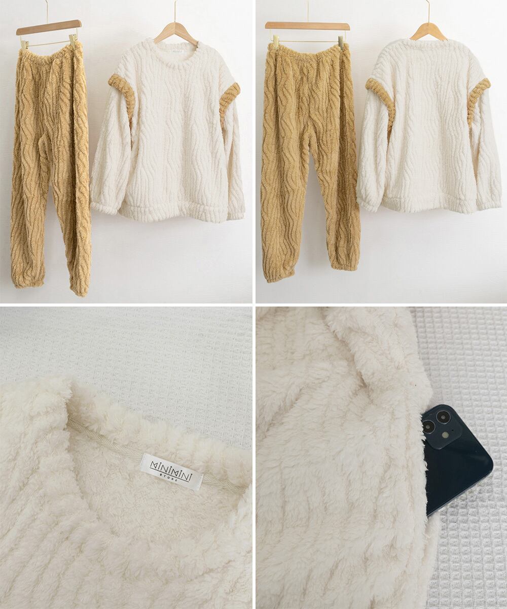 ふわふわ ルームウェアセットアップ もこもこ 部屋着 軽く暖かい ボアパジャマ リラックス 冬用室内着 保温長袖 韓国風