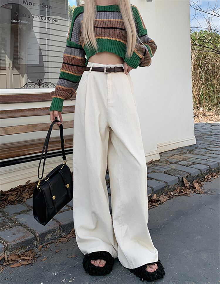 コーデュロイ ワイドパンツ 大人気 ゆったりする 快適である カジュアルパンツ ロングパンツ