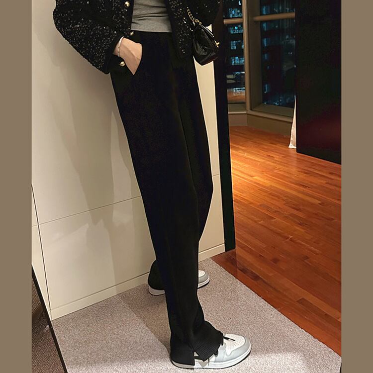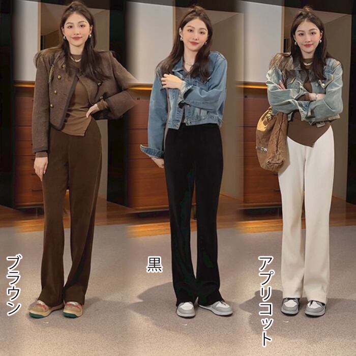 トレンド レディース コーデュロイ 裏起毛 ロングパンツ 裏ボア ストレートパンツ ボトムス 黒