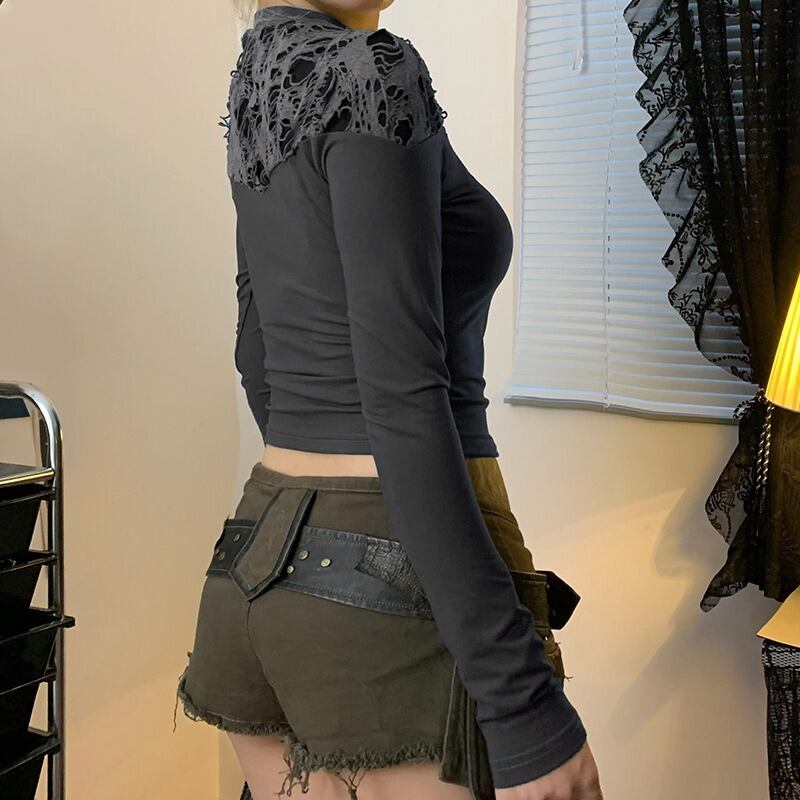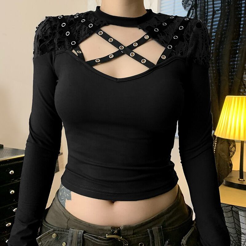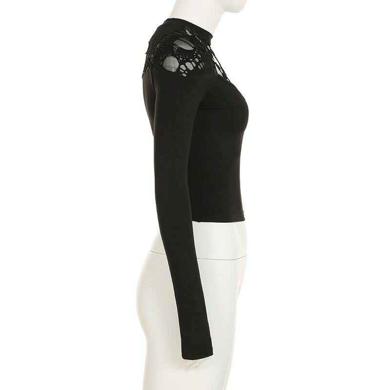 トップス カットソー ロンT Tシャツ カットアウト 細身 スリム タイト レディース