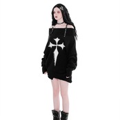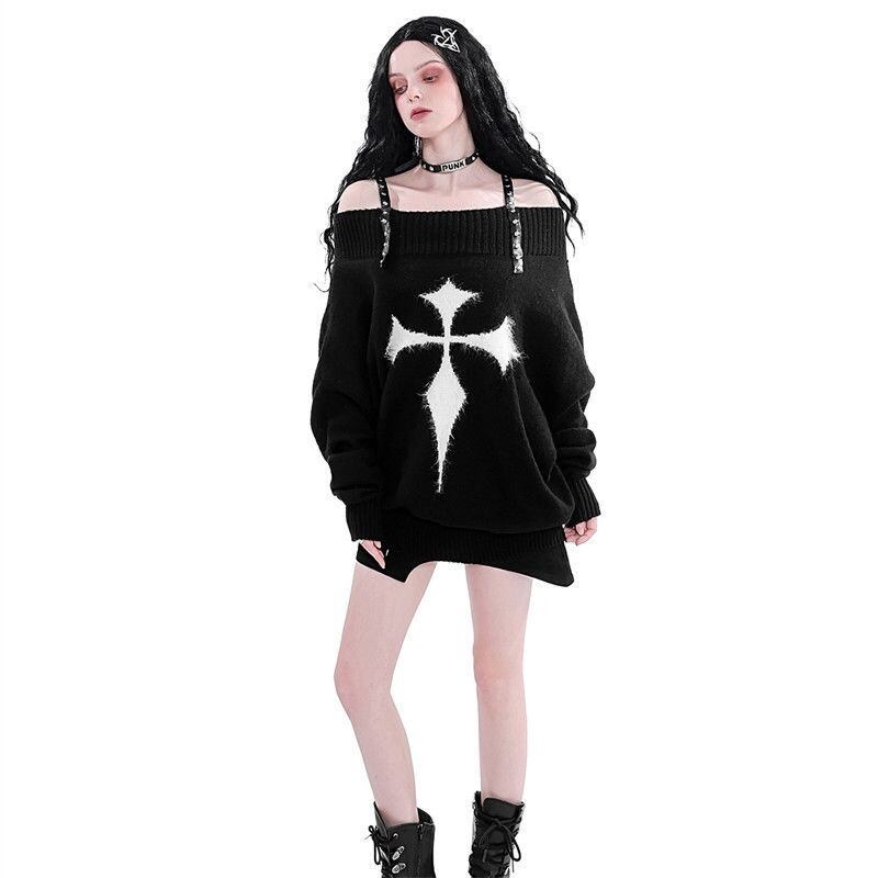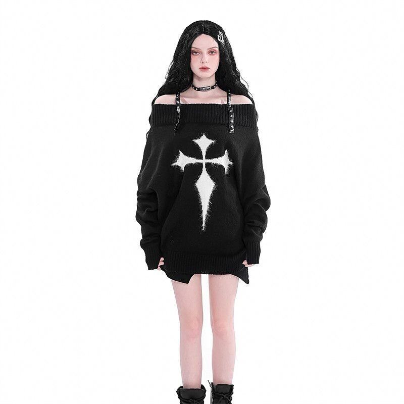 トップス ニット セーター 毛糸 オフショルダー パンクファッション レディース