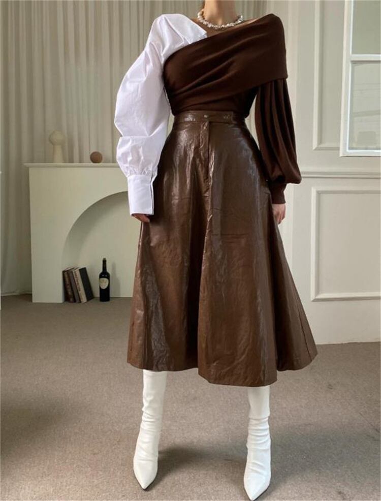気質 スリム カラーマッチング ニット 縫付 トップス デザインセンス 新作 オフショルダー