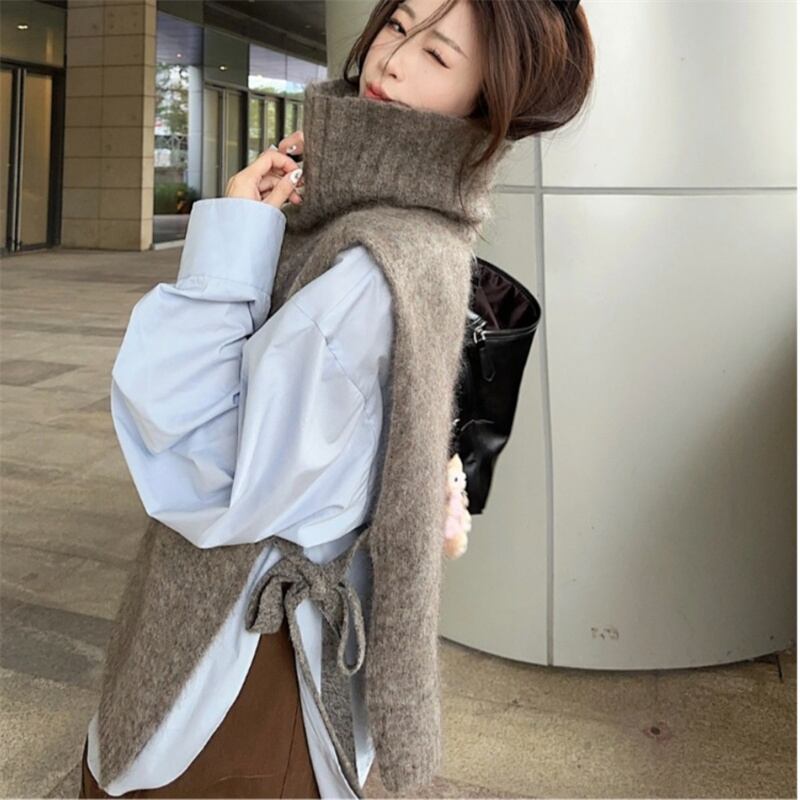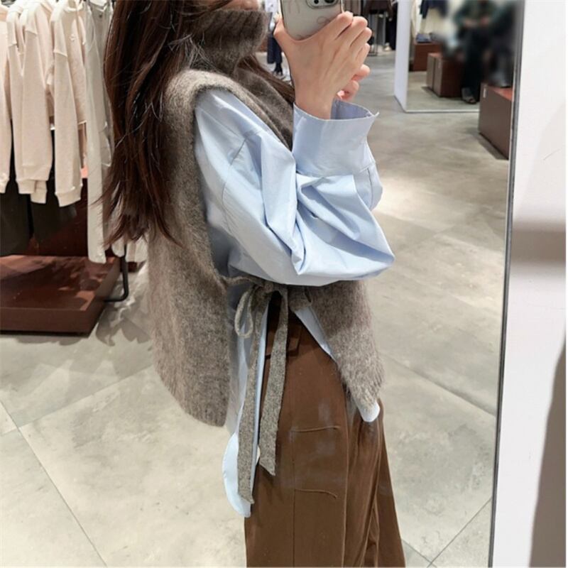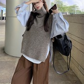トップス ニットベスト タートルネック スリット レディース 体型カバー シンプル