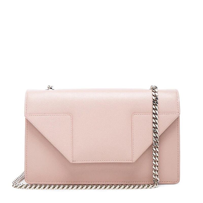 洗練されたデザインと、エレガントなライトピンクカラーが魅力のショルダーバッグ。上質なレザー素材で仕立てられており、どんなコーディネートにもマッチします。