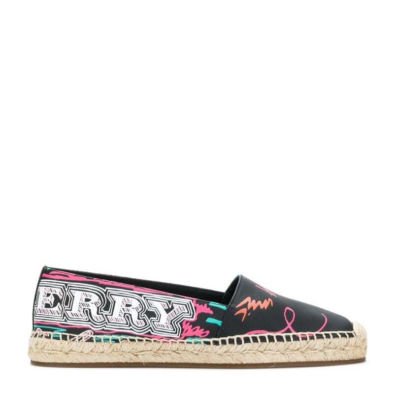 バーバリーBURBERRYレディース プリントテキスタイルエスパドリーユ シューズ 4066503 00100 BLACK